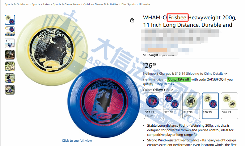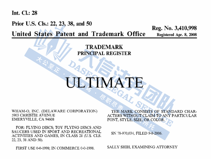 此案为商标维权,涉及5个商标,关键词:FRISBEE、FASTBACK FRISBEE、ULTIMATE、WHAM-O、FRISB等,未经授权随意使用均有侵权风险,以下是涉案商标的具体信息,可供卖家参考,避免TRO侵权损失!