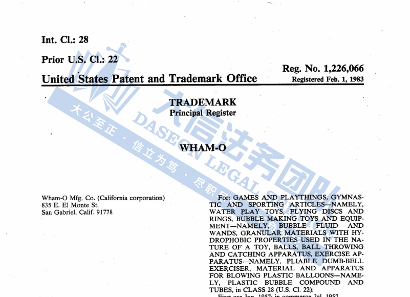 原告Wham-O Holding, Ltd.成立于 1948 年,总部设在美国加州,是一家拥有 70 多年文化和商业历史的玩具公司。其品牌旗下有 Frisbee、Hula Hoop、HACKY SACK、Boogie、Slip 'N Slide 等知名品牌,在娱乐和运动领域具有广泛影响力。其中,Frisbee 作为飞盘的代名词,发案率极高。