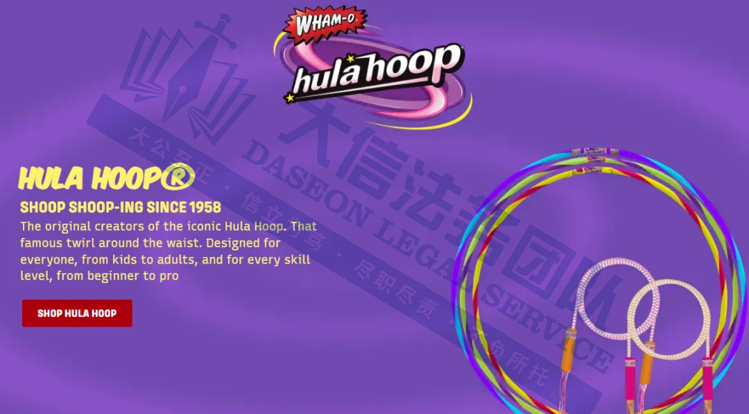 原告Wham-O Holding, Ltd.成立于 1948 年,总部设在美国加州,是一家拥有 70 多年文化和商业历史的玩具公司。其品牌旗下有 Frisbee、Hula Hoop、HACKY SACK、Boogie、Slip 'N Slide 等知名品牌,HULA-HOOP 是一款风靡全球数十年的经典健身玩具,自1958年首次上市以来,这款塑料圈圈通过旋转运动结合趣味健身,迅速占领了欧美市场,并成为多代人童年和健身记忆中的代表性产品。