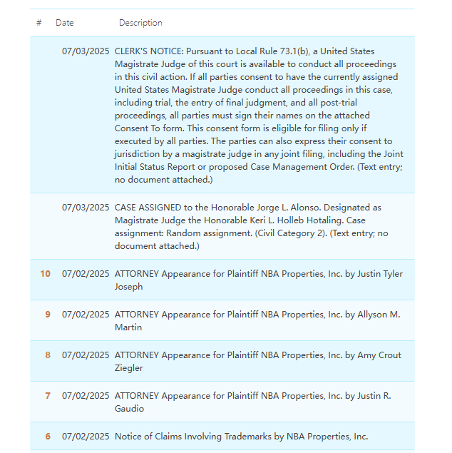 原告NBA(美国国家篮球协会)是一个全球性的体育和媒体组织,其围绕五个职业体育联盟(NBA、WNBA、NBA G 联盟、NBA 2K 联盟和非洲篮球联赛)开展业务,在国际上占有重要地位。NBA在 215 个国家和地区以 50 多种语言提供比赛和节目,在七大洲 200 多个国家和地区销售商品。 NBA Properties主要负责运营和推广职业和半职业体育俱乐部以及赛事。