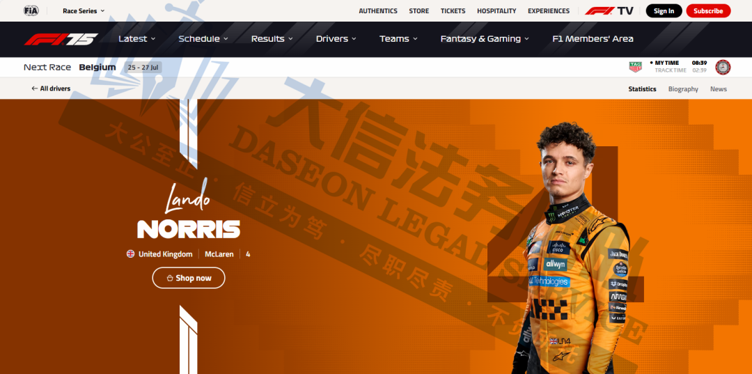 原告是全球瞩目的英国一级方程式赛车手,现效力于迈凯伦车队,自2019年进入F1以来凭借出色的排位赛能力、稳定的赛场表现及 "雨战天赋" 迅速崛起,成为新生代车手的领军人物。他在 2020、2021赛季多次登上领奖台,与迈凯伦的合约延长至2025年,2025赛季更是成为世界冠军的有力争夺者,全球粉丝基础庞大。