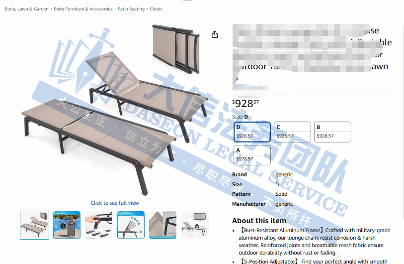 原告是来自广东的国人卖家,该公司主要从事户外家具、露营设备、园艺用品等产品的设计与出口,客户群体涵盖欧美主流市场。其产品注重实用性与舒适性结合,强调现代家居与户外生活场景的融合。产品整体设计线条简洁,注重人体工学,具备可调节角度、防水耐晒、便于收纳等功能特色。