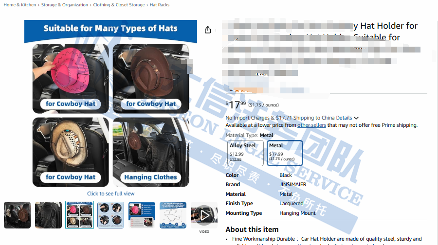 原告针对车辆设计了一款实用收纳装置,主打帽子防变形保护与空间整理功能,车载帽架采用钢制框架,具有结构坚固耐用,可稳定支撑各类帽子重量,且长期使用不易变形的优点。可适配卡车安全帽、牛仔帽等多种帽型,同时预留额外空间,可存放太阳镜、手套、围巾等小物件,实现一架多用。