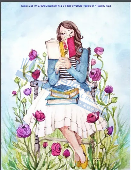 原告是一位专注于水彩画创作的艺术家,她的作品以独特的叙事风格而闻名,主题通常围绕奇幻、浪漫、友谊和自然展开。自幼对文学充满热爱的她,常常在作品中融入故事性元素,通过绘画展现富有灵感的女性形象,其作品广泛应用于家居用品、厨房纺织品、文具、墙艺、布料和贺卡等产品。