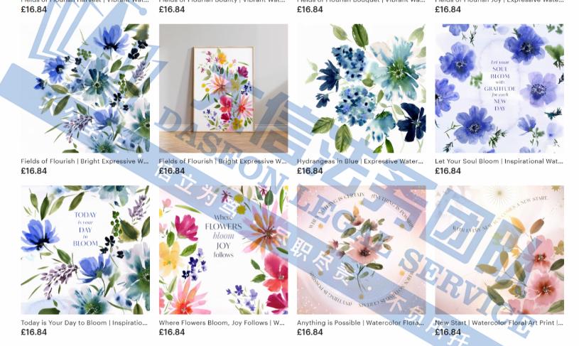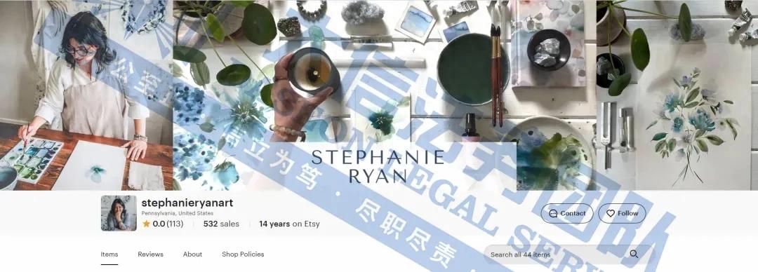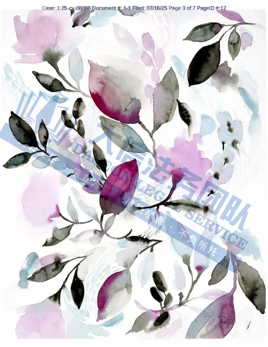 原告Stephanie Ryan 以其清新、细腻、充满自然气息的水彩画风而闻名,利用水彩的透明性叠加色彩,创造出清新通透、富有深度的效果。色彩过渡自然流畅,边缘常常带有水彩特有的柔和晕染,给人以温柔、治愈的感觉,也擅长运用和谐、雅致的对比色,但对比通常不如抽象画那样强烈刺眼,而是更加含蓄、平衡,充满女性化的优雅。在家居用品、文具礼品、时尚印花、装饰画、出版及数字设计等领域具有极高的应用价值和商业吸引力。