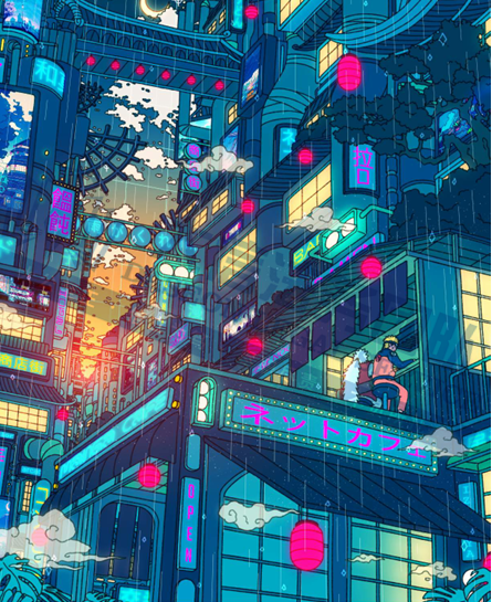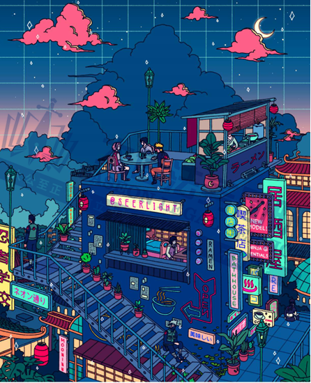 原告是一位插画师和动画师,其创作的作品以营造氛围和意境为特点,灵感来源于90年代电子游戏、动漫以及日本浮世绘。他的作品风格独特,融合了多元文化元素,既吸收了 90 年代电子游戏的视觉风格,又借鉴了日本动漫美学和传统浮世绘技法,尤其受到宫崎骏动画电影的深刻影响,与明亮的日落形成对比,给人温暖且诱人的感觉。