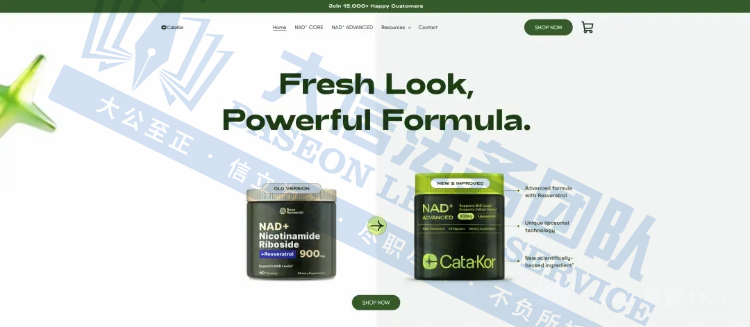 原告是由Vlad Seuruk在美国成立的抗衰老科技企业,于2019年成立,以LipoNAD+技术为核心,研发出亚马逊与TikTok平台畅销的NAD+膳食补剂,通过脂质体递送技术提升吸收效率。2025年品牌更名为Cata-Kor,聚焦长寿科学领域,通过脂质体包裹烟酰胺核糖、白藜芦醇等成分,实现比传统NMN补充剂更高效的NAD+前体吸收,提供抗衰老健康解决方案。