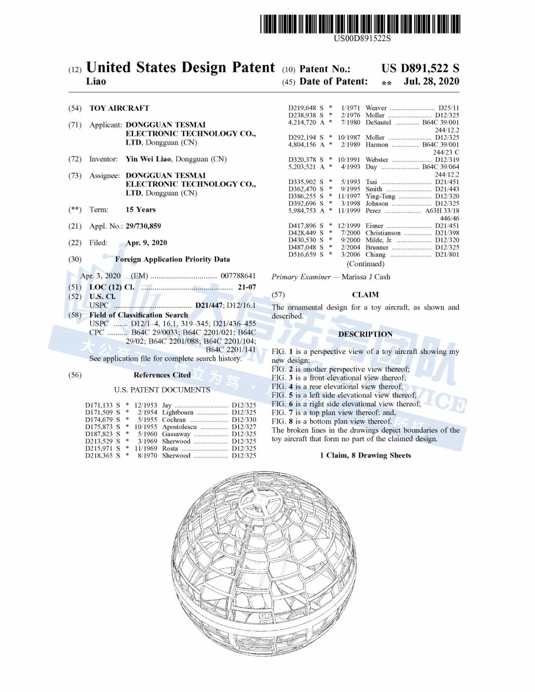 此案为专利维权,目前该案件具体信息还未公开,但原告曾针对US D891,522S的外观专利多次发起过维权,以下是涉及专利的具体信息,未经授权均不可擅自使用,侵权风险极高!跨境卖家尽快检索下架,避免造成更大的侵权损失!