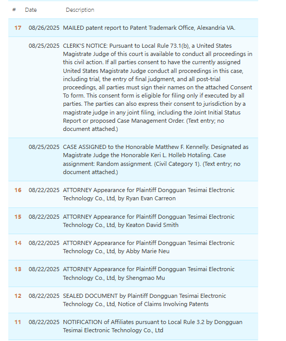 原告:Dongguan Tesimai Electronic Technology Co., Ltd