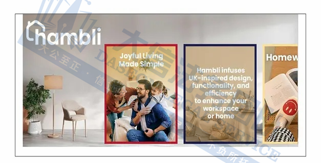 原告是一家位于英国的私人有限责任公司,该公司围绕“Hambli”品牌打造的产品主打“英国设计(British Design)”理念,以“Joyful Living Made Simple(简约愉悦生活)”为核心定位,将英国风格设计、功能性与高效性相融合,产品可适用于家庭生活空间及办公场景,致力于为消费者提升空间使用体验。