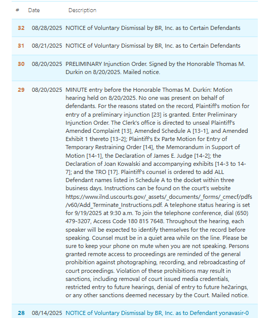 此案为匿名商标维权,目前已有67家店铺被冻结,跨境卖家一定要注意检索下架,未经授权均不可擅自使用,侵权风险极高!以下是涉案商标信息,可供卖家参考,避免TRO侵权损失!