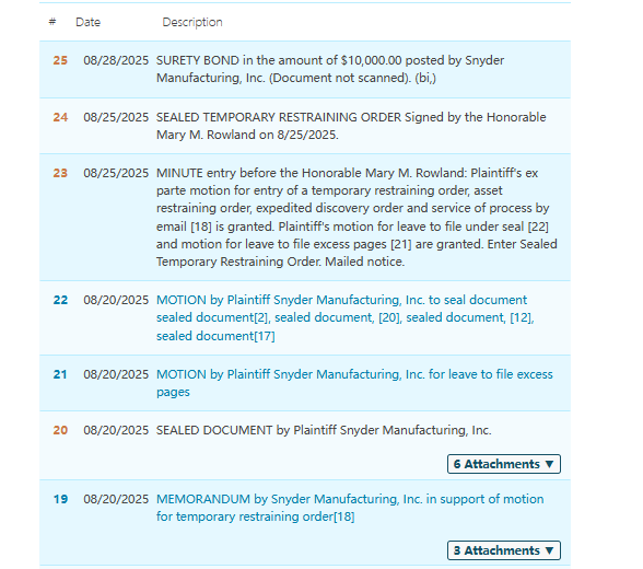 原告:Snyder Manufacturing, Inc.