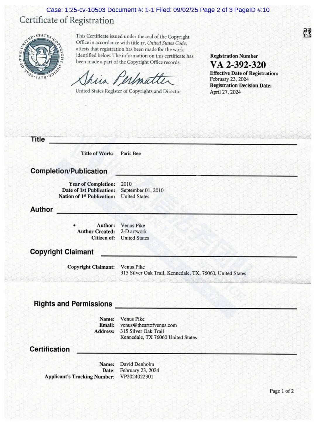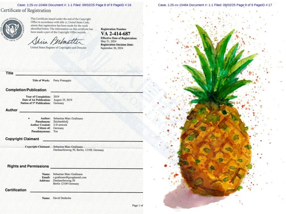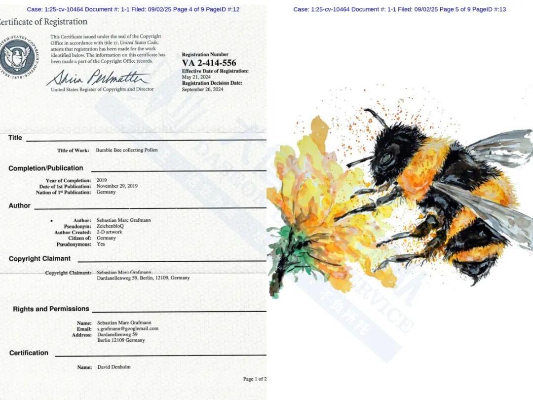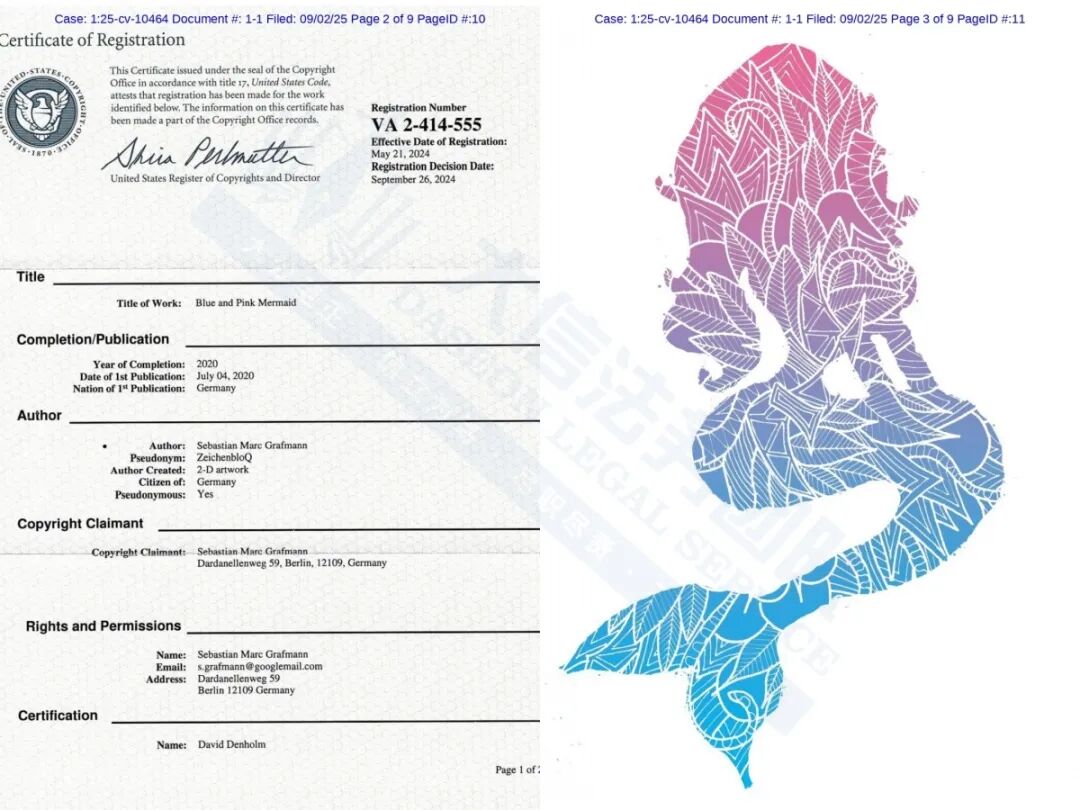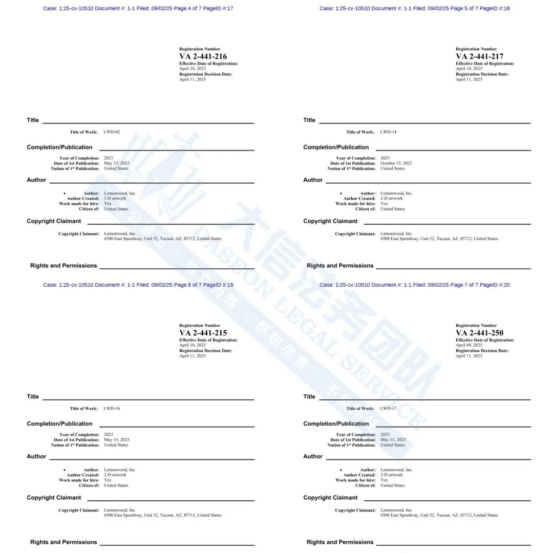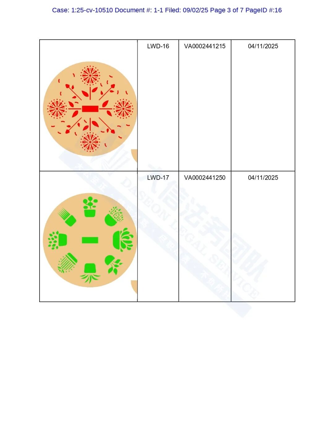 此案为版权维权,共涉及版权图4张,于2024年5月21日获得认证,版权号:VA2-414-555、VA2-414-556、VA2-414-586、VA2-414-687,以下是相关版权的具体信息,未经授权不得擅自使用,侵权风险极高!跨境卖家尽快检索下架,否则会有TRO侵权风险!