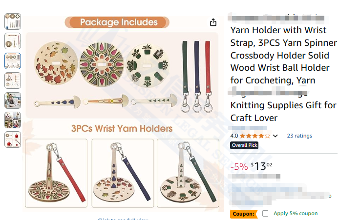 此案为版权维权,共涉及4张版权图,该文字商标注册在第8类工具类目,注意!除此之外,原告名下有23条版权,以下是涉及版权的具体信息,未经授权不得擅自使用,侵权风险极高!跨境卖家尽快检索下架,否则会有TRO侵权风险!