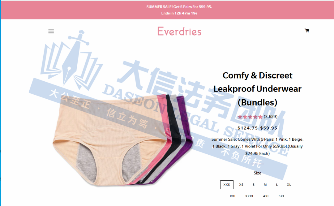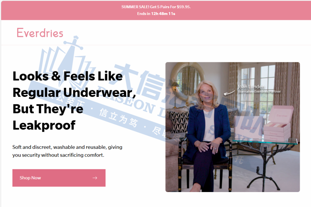 此案为商标维权,涉及一项商标,关键词:Everdries,商标号:7741929,于2025年4月1日下证,该商标注册在第5大类,涵盖失禁内衣等,以下是涉及商标具体信息,未经授权不得擅自使用,侵权风险极高,跨境卖家尽快检索下架,避免TRO侵权风险!
