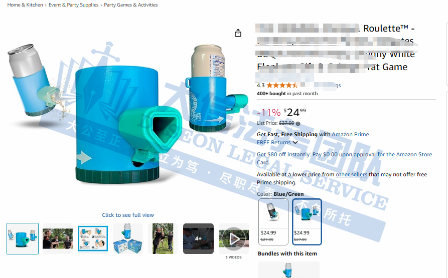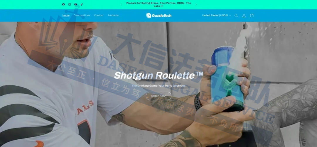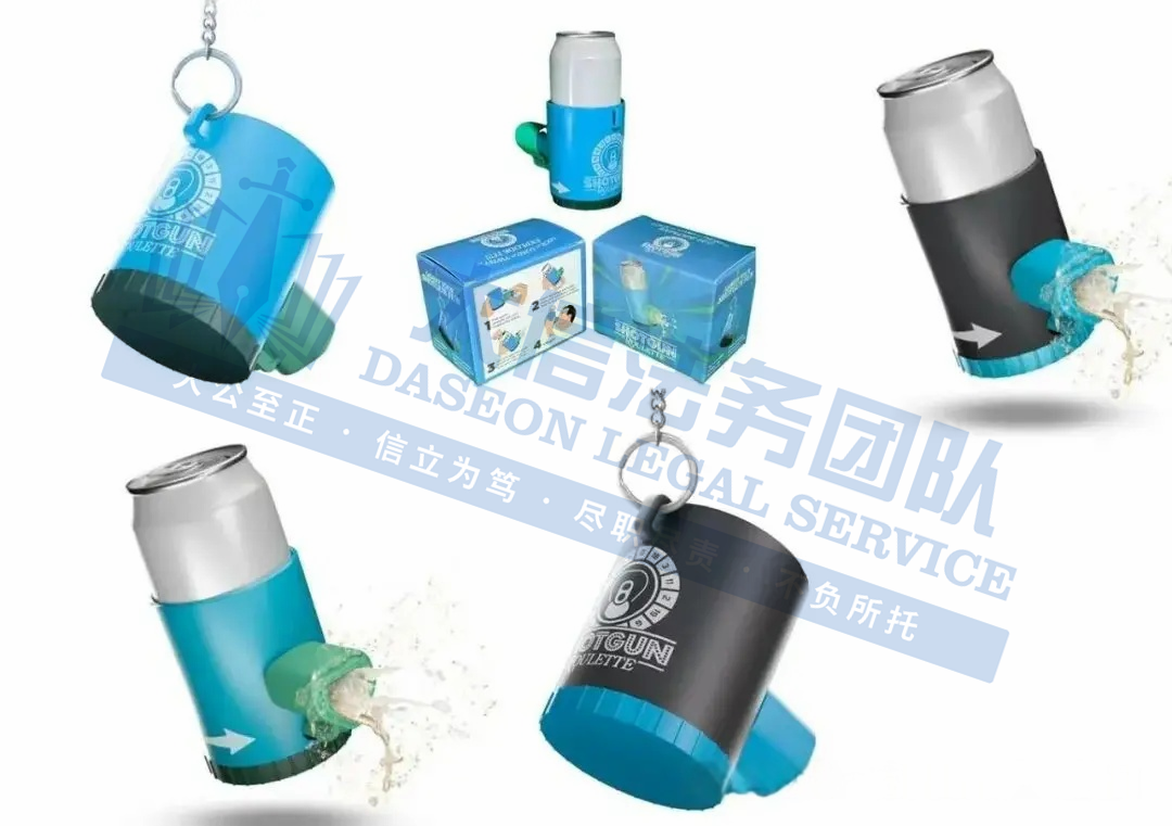 原告是美国一家创意公司,专注于开发和销售派对娱乐产品,旗下有一款明星产品 Shotgun Roulette的饮酒游戏设备,该产品为聚会派对增添趣味。用户仅需将啤酒、饮料装进Shotgun Roulette轮盘开瓶器中,玩家轮流旋转底部轮盘,直至罐体被快速刺穿,被喷到的玩家需要将饮料喝完,将游戏氛围推向高潮,深受年轻人喜爱。
