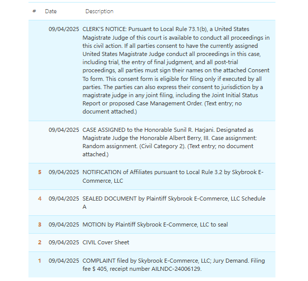 25-cv-09104,法院要求已经将被告人数限制在200人,相关店铺资金已经全冻结