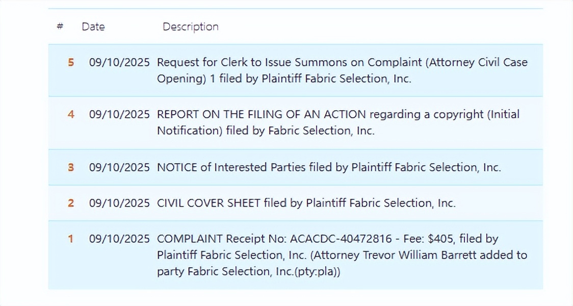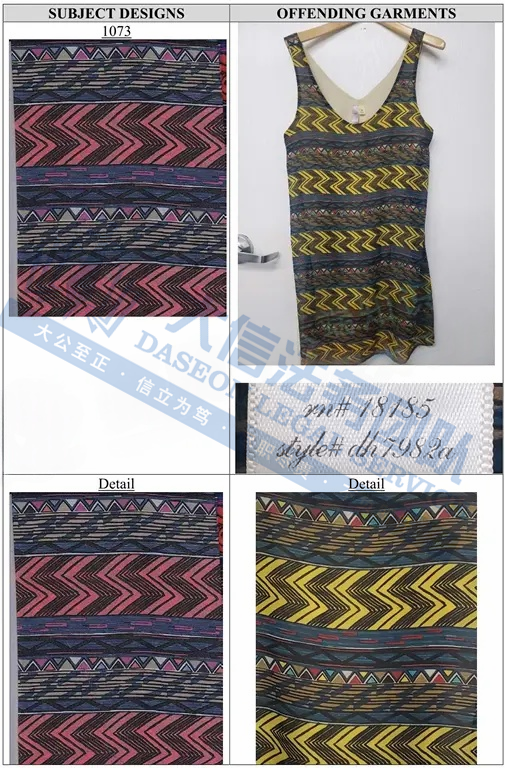 原告位于美国加利福尼亚州洛杉矶的纺织品设计公司,专注于纺织面料图案的研发创新,旗下有一款Fiesta Fabric印花面料,融合多元文化元素,为服饰、纺织企业打造出深受市场欢迎的印花布料,产品被广泛应用于各类服饰与家居纺织领域。