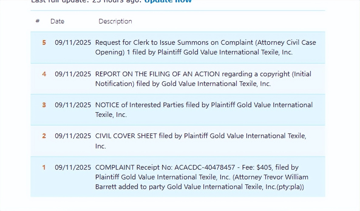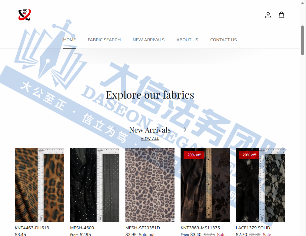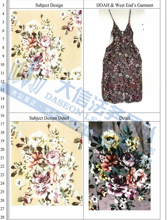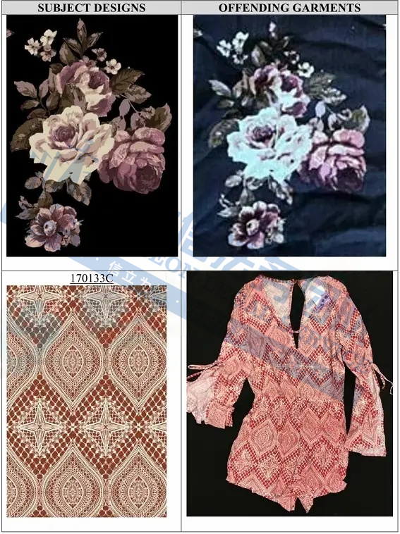 原告是位于美国洛杉矶的纺织品批发零售商,其产品涵盖针织、蕾丝、梭织、网眼布料等全品类面料,满足服装、家居、工业等多领域需求。经典棉麻与高端蕾丝、针织印花等独特设计并存,既有适合大众市场的实用纹理,也有充满创意的时尚图案。