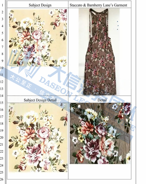 此案为版权维权,原告注册了多款印花版权,以下是涉及版权具体信息,未经授权不得擅自使用,侵权风险极高,跨境卖家尤其是服装卖家尽快检索下架,避免TRO侵权风险!