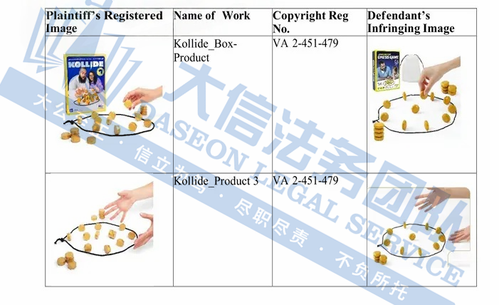 此案为版权维权,涉及一项版权号为VA 2-451-479的维权,涵盖了游戏组件,像三维磁性棋子的外观、结构设计,以及游戏场地布置的视觉素材;还有游戏说明书,其中包含了游戏目标、setup 步骤、玩法规则、单人模式说明等文字内容,除此之外,还有9张已经登记的游戏照片。以下是涉及版权具体信息,未经授权不得擅自使用,侵权风险极高,跨境卖家尽快检索下架,避免TRO侵权风险!