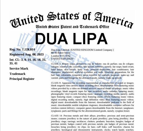 歌手Dua Lipa商标