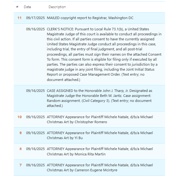 原告:Michele Natale, d/b/a Michael Christmas Art