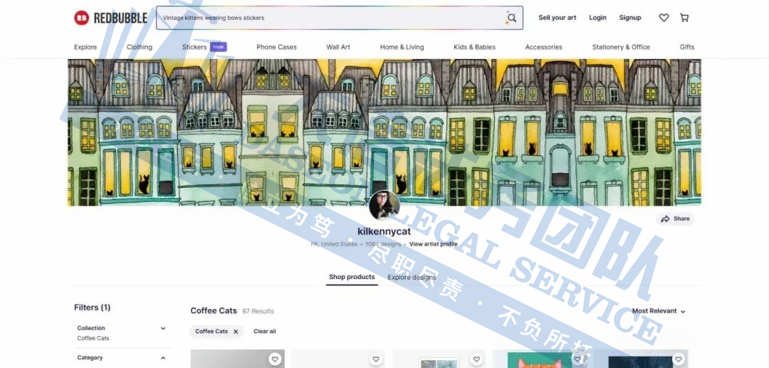 原告是一位独立插画艺术家,她的作品最大特点就是以猫咪为主角,融合了童趣、温馨和幽默感。他的作品涵盖了多种媒介,包括绘画、插画和数字艺术,展示了他对色彩、形式和情感的深刻理解,笔下的猫咪常常带着夸张表情和拟人化的动作,色彩鲜明又充满故事感,让人一眼就能记住。受到不少爱猫人士和插画收藏者的喜爱。