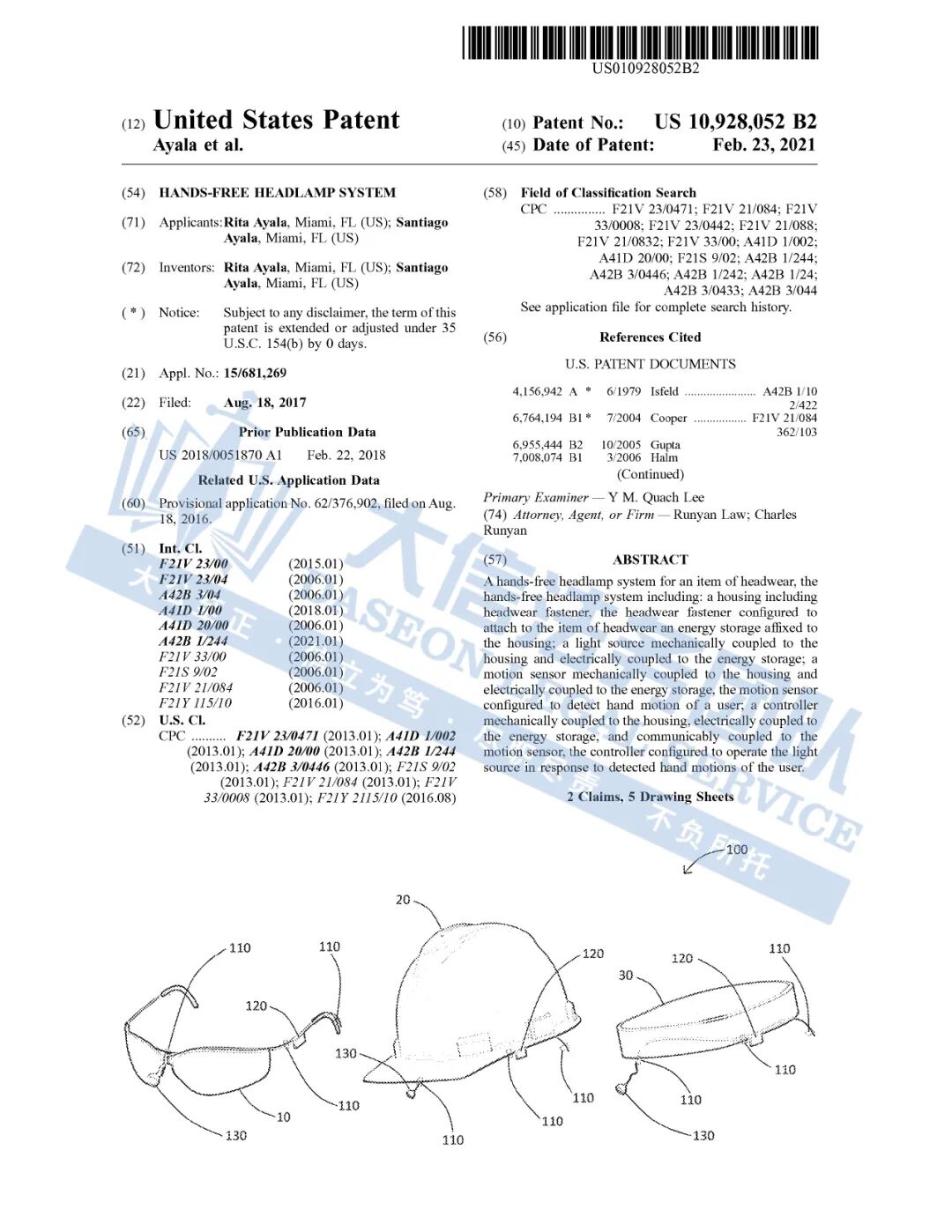 此案为专利维权,目前案件信息还处于密封状态,但经查询,原告在24就曾针对专利号为:10928052的免提头灯发起过维权,并于2021年2月23日下证,以下是涉及专利的具体信息,未经授权不得擅自使用,侵权风险极高,跨境卖家尽快检索下架,避免TRO侵权风险!