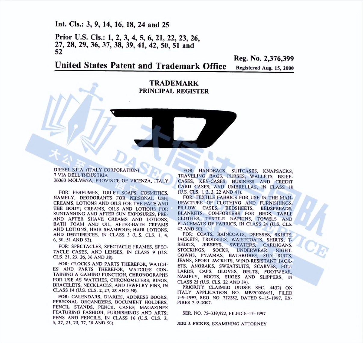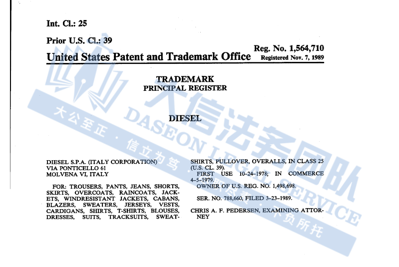 原告是位于意大利,是欧洲顶级设计师牛仔裤和其他服装制造商之一,包括DieselStyleLab品牌、极限运动风格的55-DSL运动服系列和Diesel Kids童装,除此之外,Diesel业务涵盖服装、鞋履、皮具、眼镜、腕表、香水及家居用品等多个领域,在全球拥有200余家专卖店,批发业务覆盖大型服装销售点和百货商店。