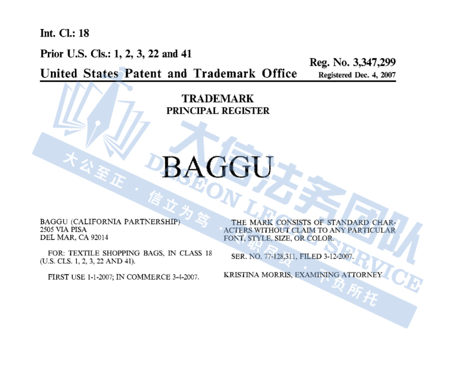 原告:BAGGU CORPORATION