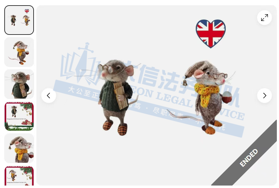 此案为版权维权,5项拟人化老鼠毛毡版权作品,目前已经有14家店铺被冻,以下是涉及版权的具体信息,未经授权不得擅自使用,侵权风险极高,跨境卖家尽快检索下架,避免TRO侵权风险!