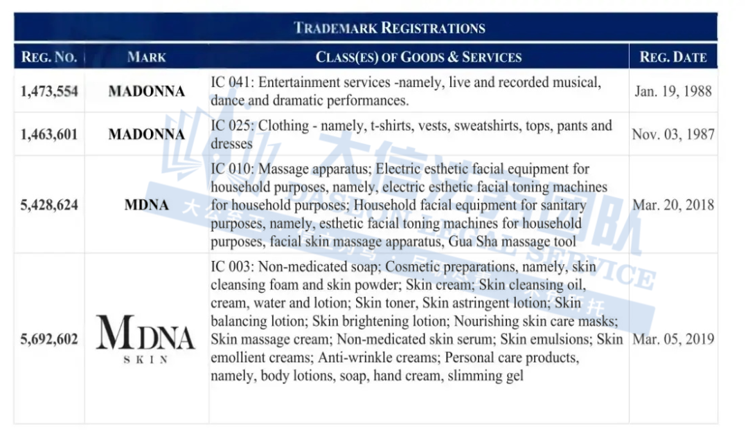 此案为商标维权,涉及4个商标,涵盖阀内服饰鞋帽、教育娱乐这两个范围,注意,一些国外比较著名的明星都会注册自己名字的商标,卖家们上架前一定要多注意检索,未经授权不得擅自使用,侵权风险极高!