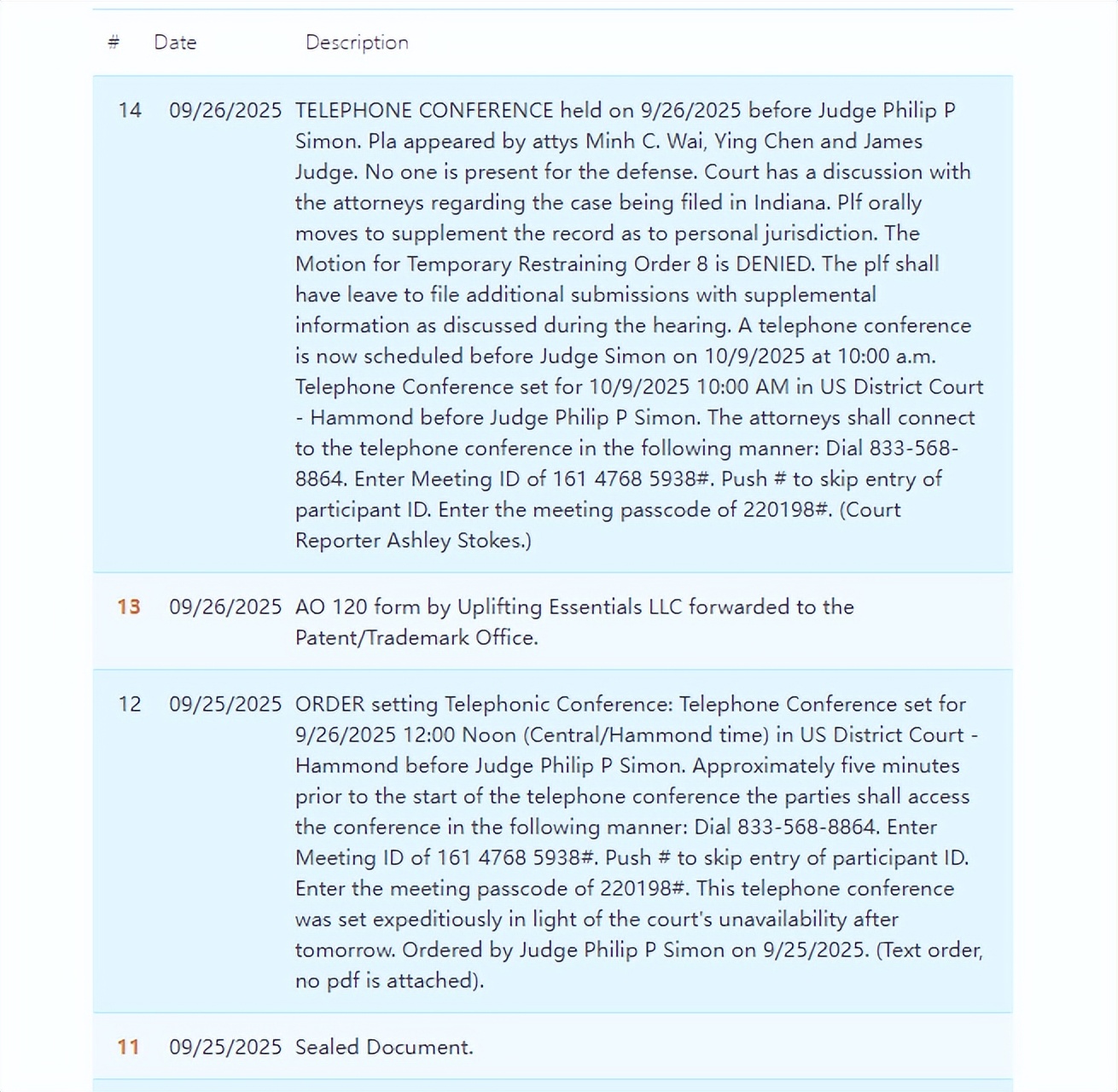 受理法院:美国印第安纳州北区联邦地区法院