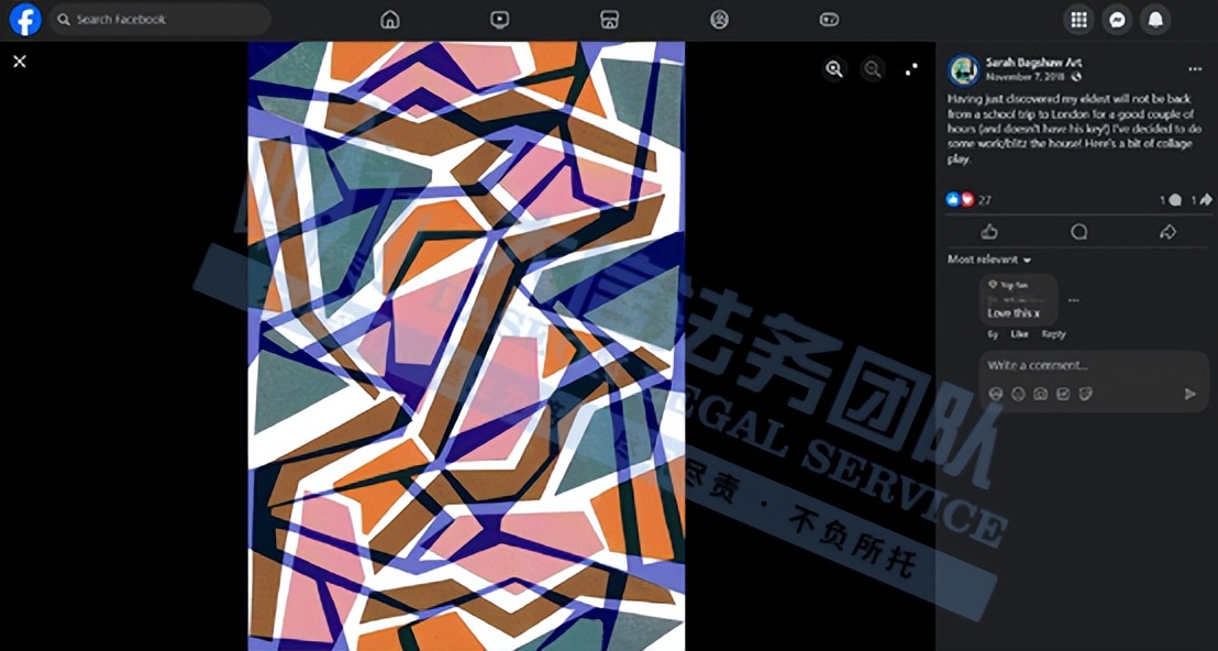 原告是来自英国的设计师,她的作品充满艺术感。她喜欢利用废弃材料,通过绘画加入色彩和图案,创造出独特的艺术效果。她的作品应用范围广,服装、包装上都能用,还在知名画廊展出过,拿过 Jackson Art Prize 和当代艺术学院奖学金。
