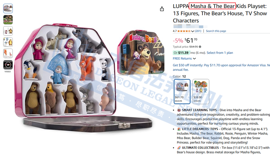 原告是一家成立于2008年的国际获奖娱乐公司,致力于在全球范围内开发、制作和发行动画品牌。《玛莎和熊》推广至150多个国家。公司的零售合作伙伴、被许可方及国际代理商网络还通过消费品和促销活动进一步增强了其知识产权的影响力。凭借其强大的媒体影响力、破纪录的YouTube表现以及专注的社交媒体运营提升整个行业水平。