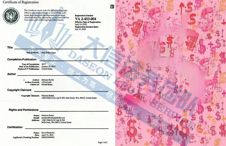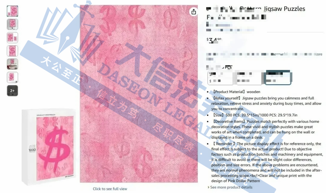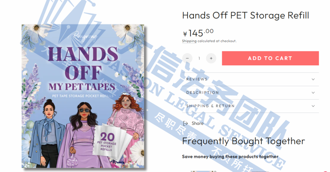 此案为版权维权,涉及1张版权图,粉红美元符号插画版权,除此之外,官网上的图片均不可擅自使用,以下是涉及版权的具体信息,未经授权不得擅自使用,侵权风险极高,跨境卖家尽快检索下架,避免TRO侵权风险!