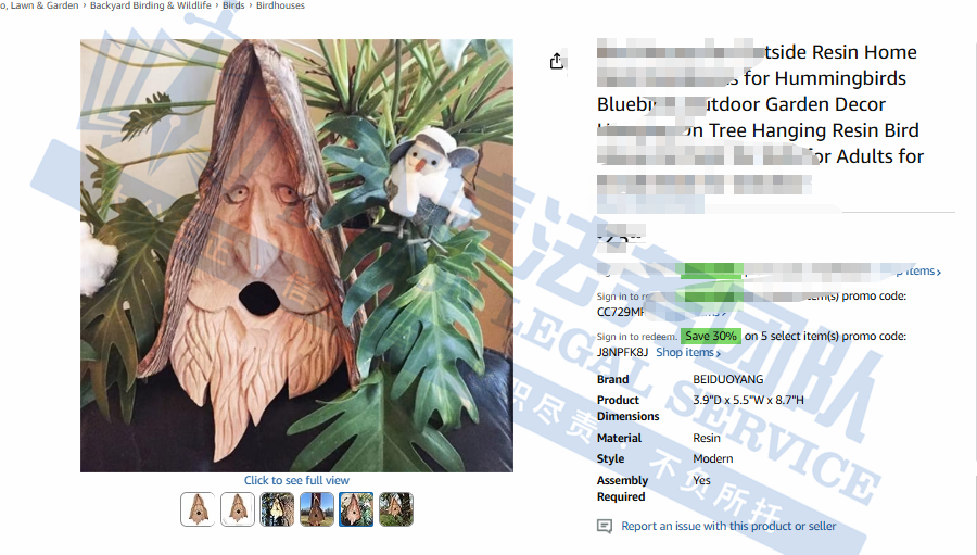 原告是来自美国的雕塑艺术家,创作的红柏木手工雕刻鸟舍房屋为小鸟提供充足进入空间,还雕刻有毛发细节,个性十足。底部可拆卸,方便用户清洁;背面平坦,便于安装在柱子上。该作品采用纯手工雕刻,区别于电脑生成,是真正意义上的艺术品,能为用户带来诸多乐趣。