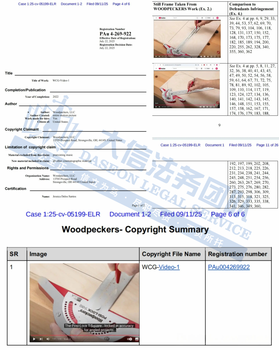 此案为版权维权,涉案版权号:VA2441999和Pau 4-259-021,分别于2025年4月16日和4月17日下证,未经授权使用该图片与操作流程视频则会构成侵权风险,以下是涉及版权的具体信息,侵权风险极高,跨境卖家尽快检索下架,避免TRO侵权风险!