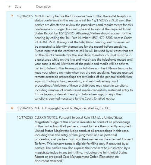 此案为版权维权,涉及版权号:VA 2-460- 943,于2025年9月4日下证,以下是涉及版权的具体信息,除此之外,官网上的其他作品未经授权不得擅自使用,侵权风险极高,跨境卖家尽快检索下架,避免TRO侵权风险!