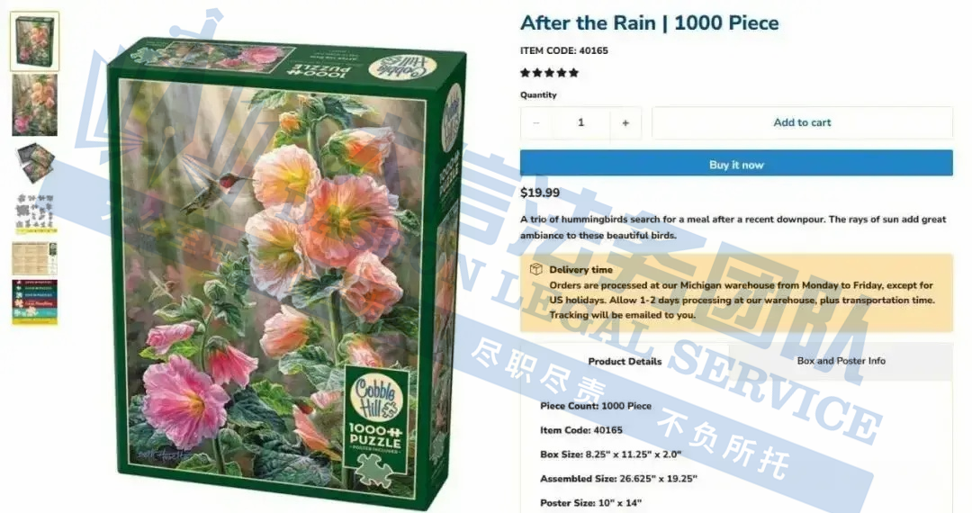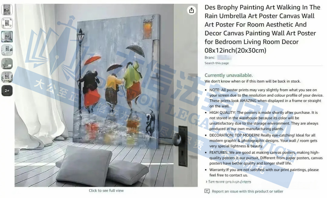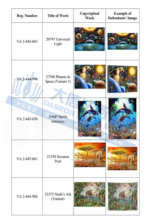 此案为版权维权,涉及19张版权作品,均于2025年1月7日下证,以下是涉及版权的具体信息,未经授权不可擅自使用,侵权风险极高,跨境卖家尽快检索下架,避免造成更大的侵权损失!