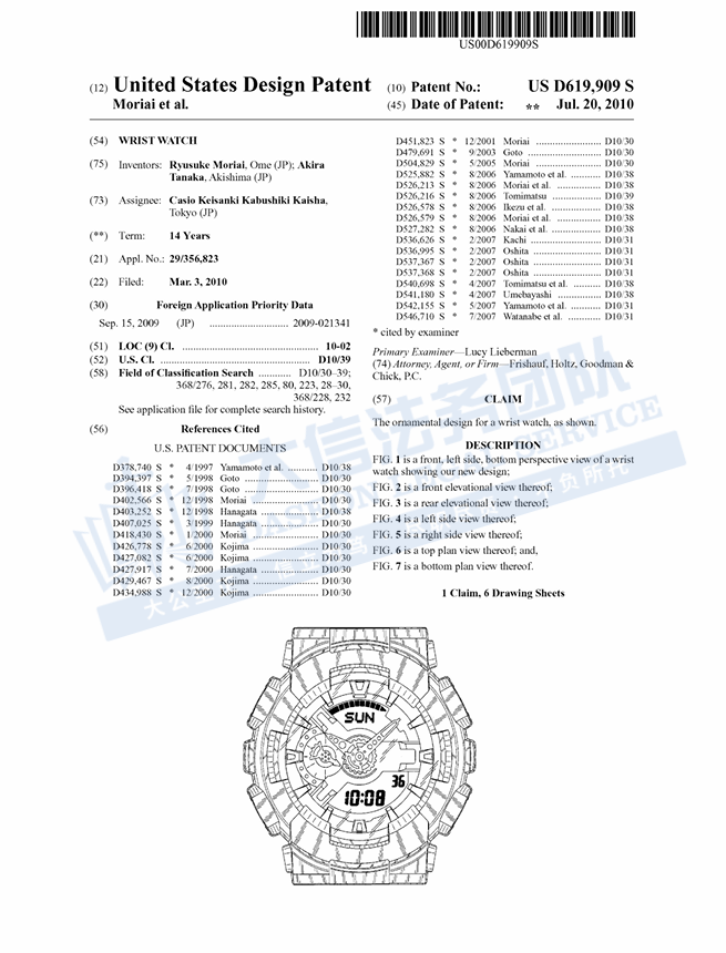 此案为专利+商标维权,专利号:D619909、D658081、 D663222等,商标关键词:CASIO、G-SHOCK、PROTECTION等,侵权风险极高!以下是维权具体信息,未经授权不得擅自使用,跨境卖家尽快检索下架,否则会有TRO侵权风险!