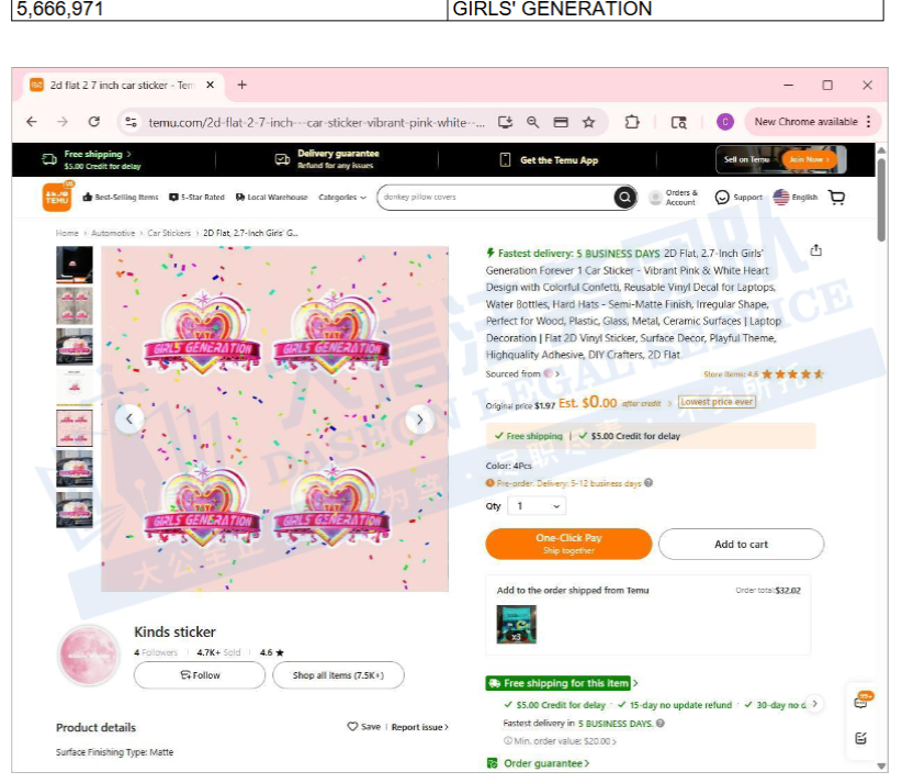 此案为商标维权,关键词:aespa、nct、SHINEE等公司旗下组合名称,产品范围涵盖CD、服饰、配饰等领域,侵权风险极高!以下是维权具体信息,未经授权不得擅自使用,跨境卖家尽快检索下架,否则会有TRO侵权风险!