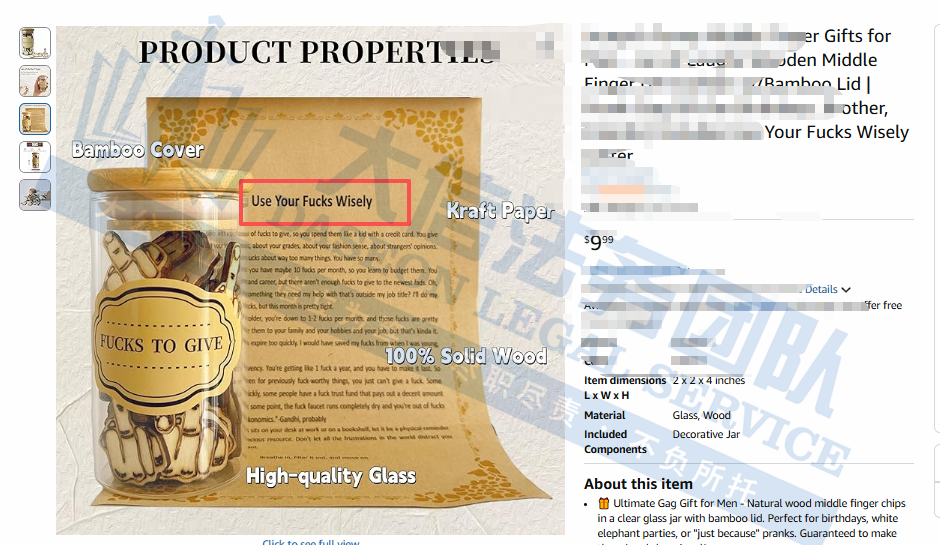 此案为版权维权,涉及一项带有《USE YOUR F***S WISELY》文字版权,版权号为:TX 9-373-972,目前具体版权图还未公开,以下图片可供卖家参考,除此之外,官网上的其他作品未经授权不得擅自使用,侵权风险极高,跨境卖家尽快检索下架,避免TRO侵权风险!