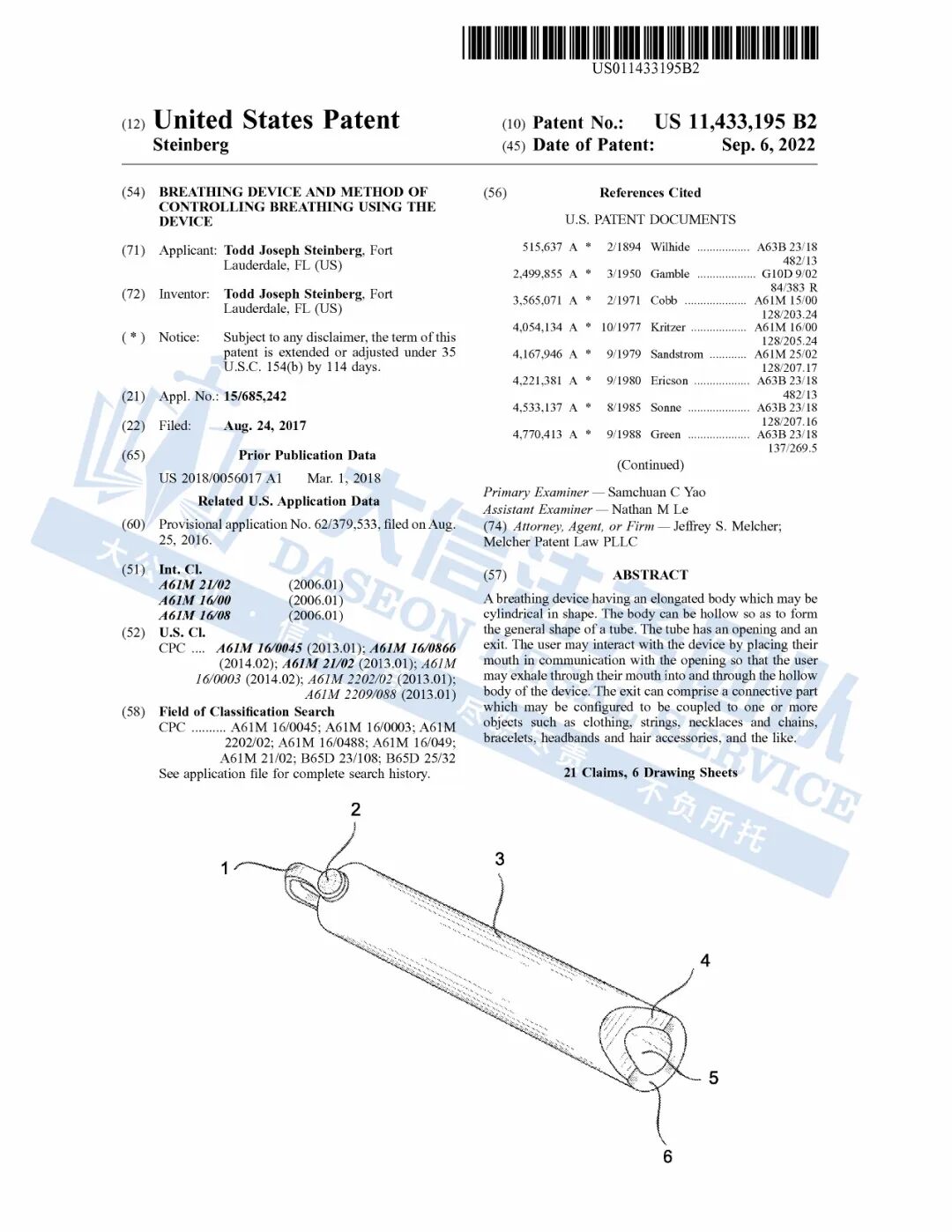 此案为专利维权,目前已有37家店铺被冻,涉及两项专利,发明专利US11433195B2,外观专利USD840529S,以下是涉及专利的具体信息,侵权风险极高,跨境卖家尽快检索下架,避免TRO侵权风险!