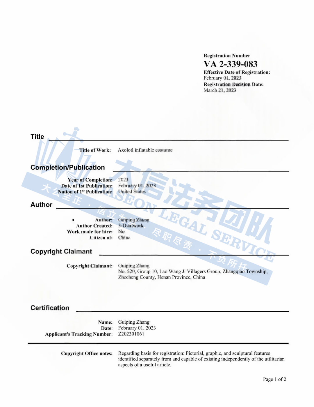 此案为版权维权,版权号为:VA 2-339-083,于2023年12月13日下证,以下是涉及版权的具体信息,除此之外,官网上的其他作品未经授权不得擅自使用,侵权风险极高,跨境卖家尽快检索下架,避免TRO侵权风险!
