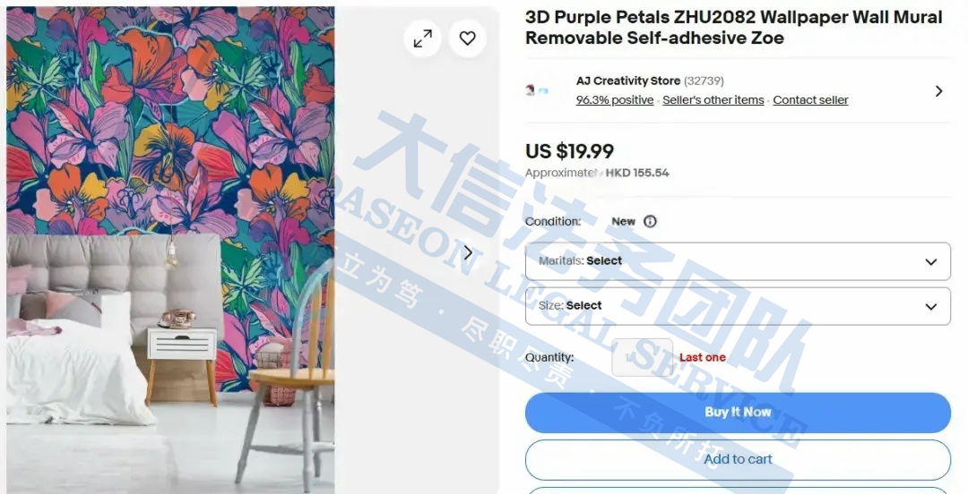 此案为版权维权,目前已有116家店铺被冻,涉及19张版权图,以下是涉及版权的具体信息,除此之外,官网上的其他作品未经授权不得擅自使用,侵权风险极高,跨境卖家尽快检索下架,避免TRO侵权风险!