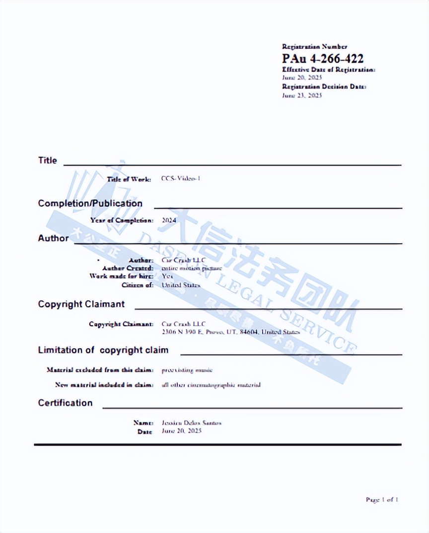 此案为版权维权,涉及两张版权,版权号:VA 2-449-622和PAu 4-266-422,于2025年6月20日下证,除此之外,还涉及车载配件4张宣传图以及视频,具体图片还未公开,以下官网图片可供参考,以下是涉及版权的具体信息,未经授权不得随意擅自使用,侵权风险极高!跨境卖家尽快对照下架,避免造成更大的侵权损失!