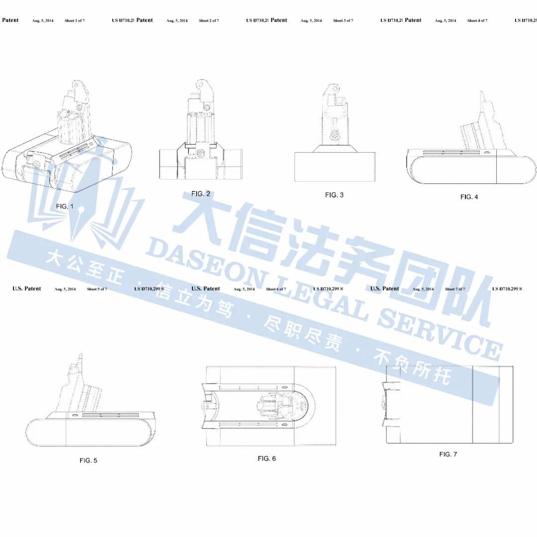 此案为专利维权,涉及一项外观专利,专利号:USD710299S,“BATTERY PACK”(电池组),该专利于2013年8月16日申请,2014年8月5日下证,主要保护的是电池组的装饰性设计,注意,只要和该专利外观相似的都有侵权风险,以下是涉及专利的具体信息,未经授权不得擅自使用,侵权风险极高,跨境卖家尽快检索下架,避免TRO侵权风险!