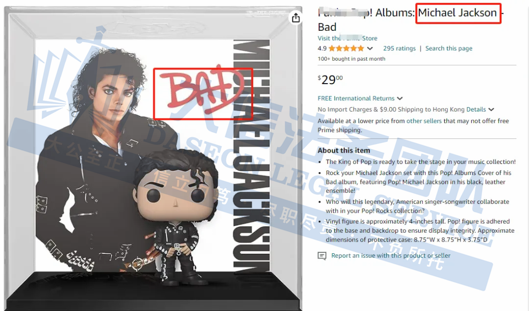 此案为商标维权,注册超多商标,包含但不限于:MICHAEL JACKSON、MJ、THRILLER、KING OF POP等,以下是商标信息,跨境卖家尽快检索下架,未经授权不能随意使用,侵权风险极高!